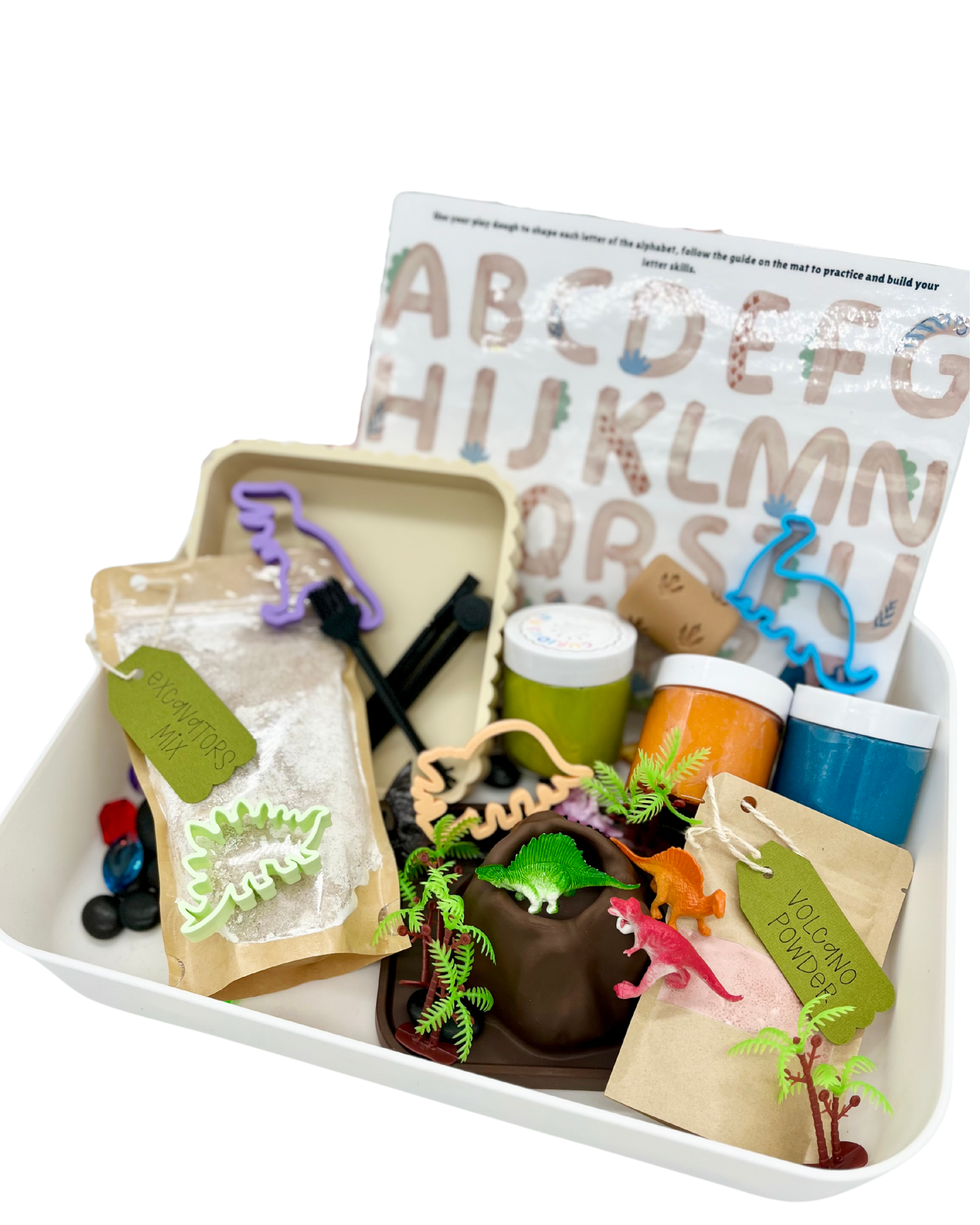 - Mini Dinosaurs: A handful of cute, mini dinos ready to be mixed into your excavation set, volcano, and play dough.