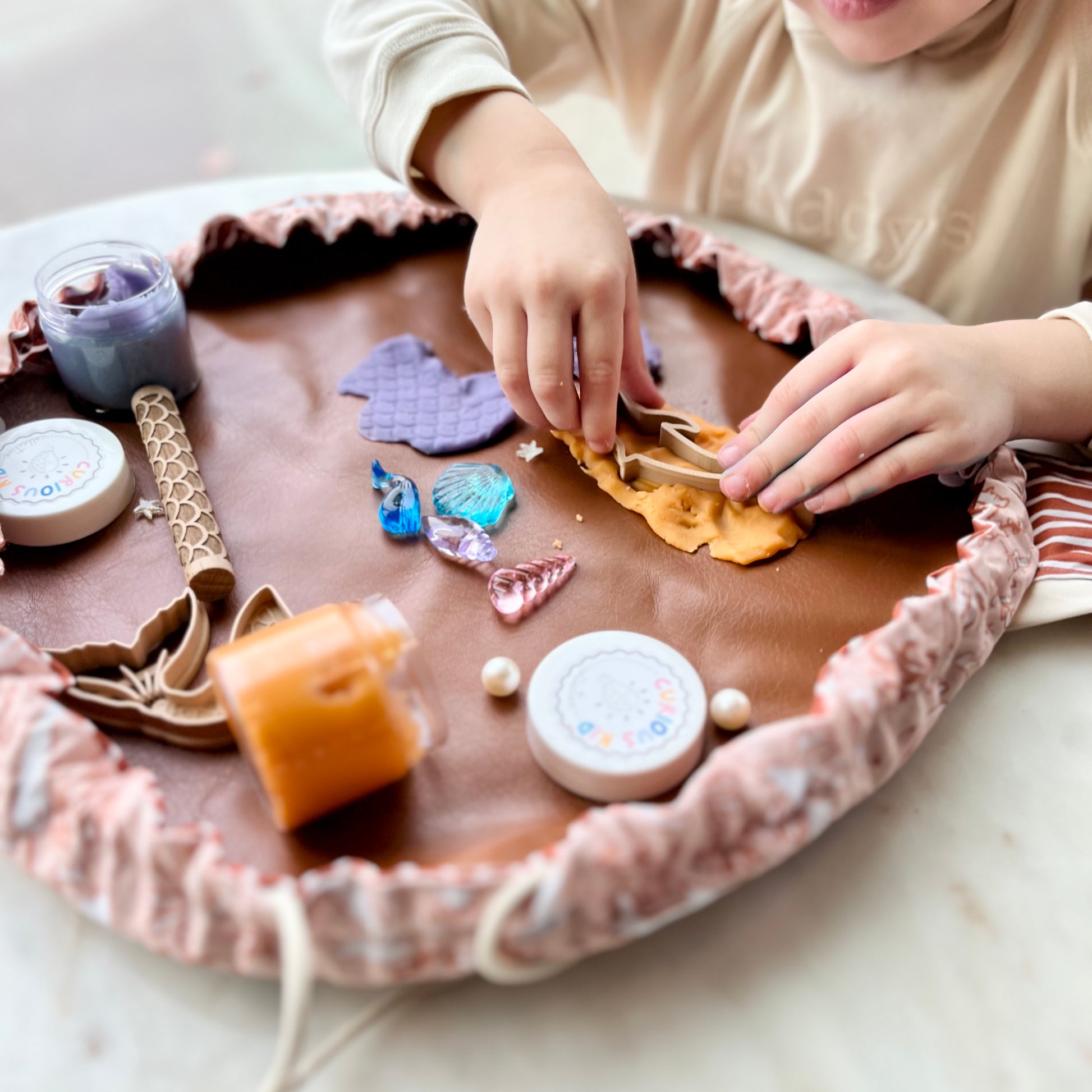 When playtime’s over, simply pop the dough back into the jars, pull the drawstrings, and knot the top—easy cleanup for even the tiniest pathfinders.