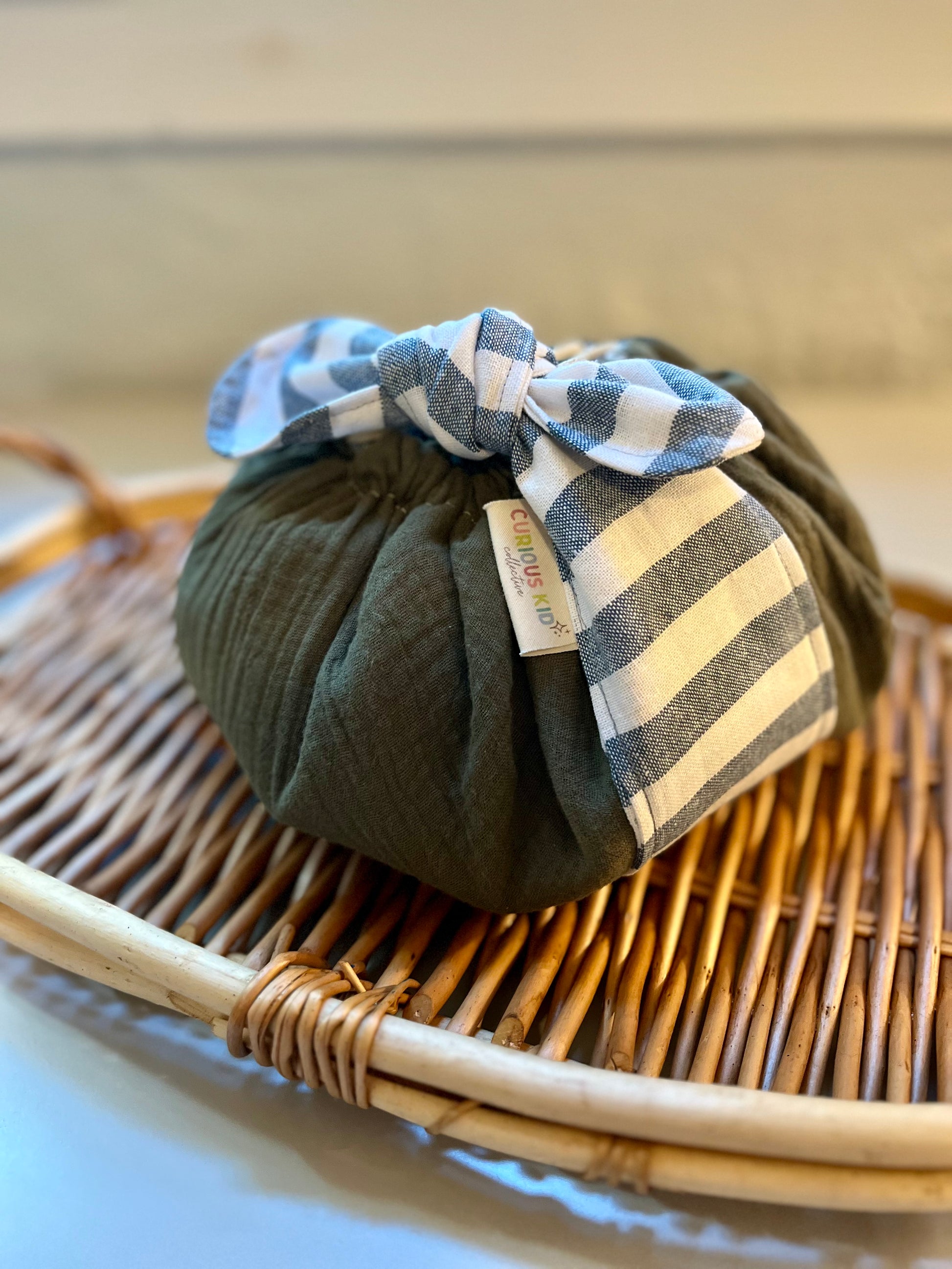 Our signature Play Sack is a washable, travel-friendly sensory bag that opens into a flat play space—no setup required. Just loosen the drawstrings, unfold the mat, and let the play begin.