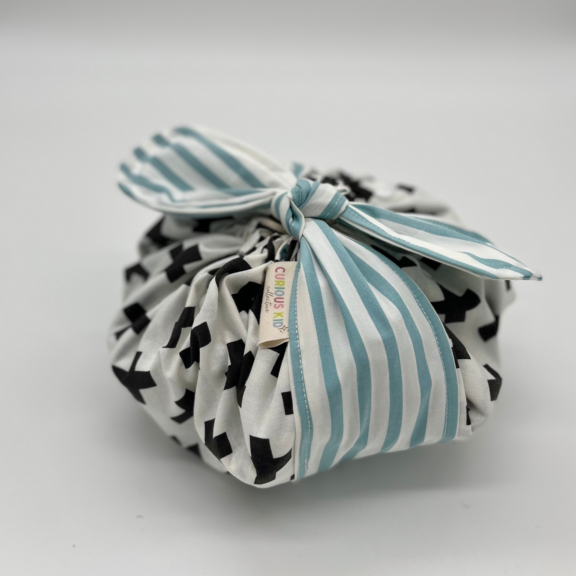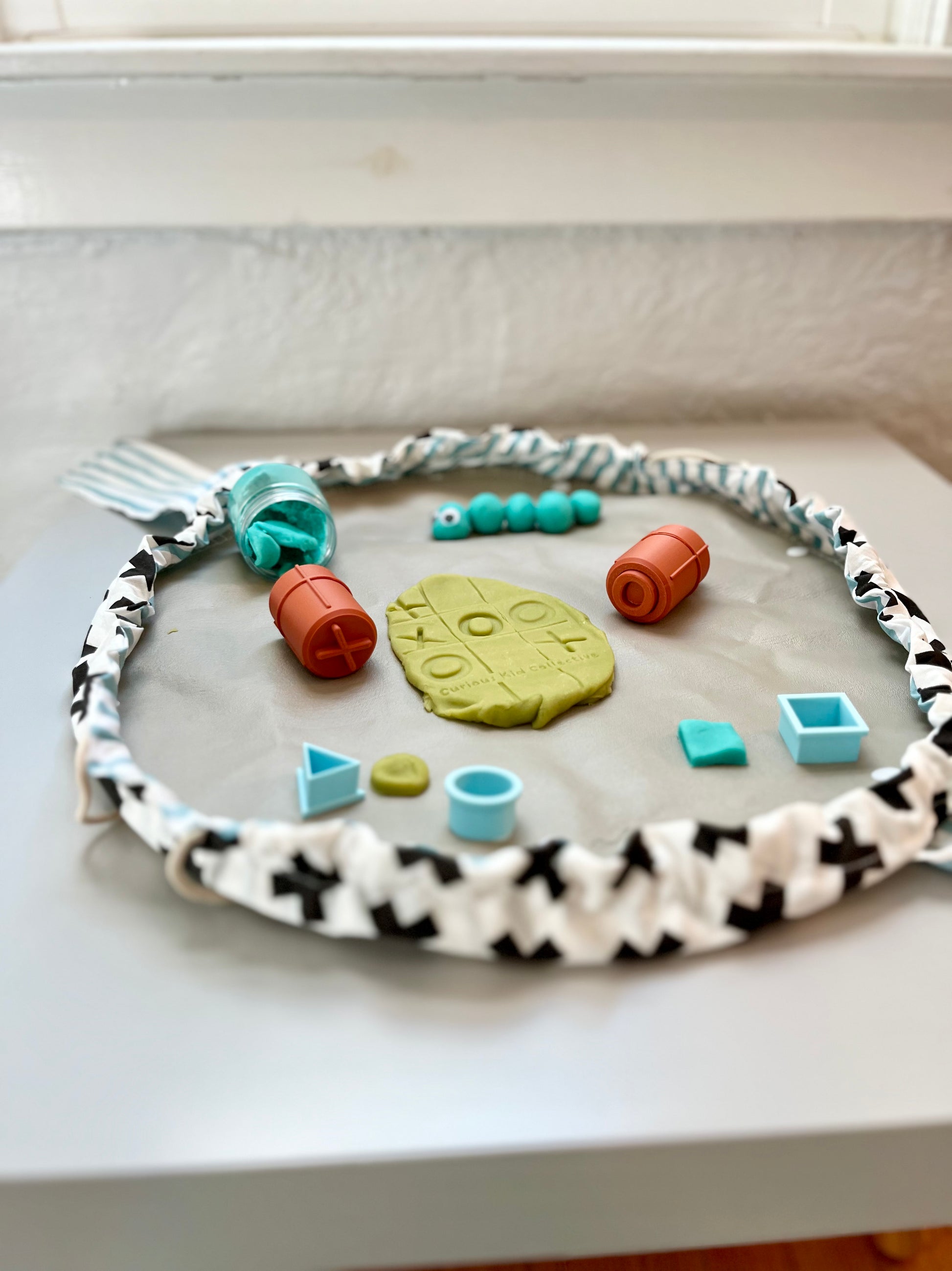 Our signature Play Sack is a washable, travel-friendly sensory bag that opens into a flat play space—no setup required. Just loosen the drawstrings, unfold the mat, and let the play begin.